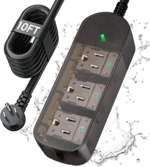 Outdoor Power Strip Weatherproof 3 FT Extension Cord Waterproof Surge Protector Power Strip, 3 AC Outlets, Shockproof, 1625W Overload Protection, for Camping, Home, Office, Garden, FCC UL Listed