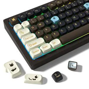 MOA Profile PBT Keycaps,132 Keys Janese Style Keycap Set with Cute Icons, Dye-Sublimation, MOA Profile,Cream Brown Theme for Most 60% 65% 75% 80% 100% US Layout Cherry MX Switches Mechanical Keyboard