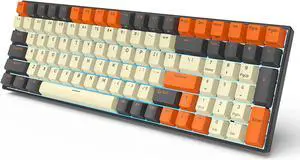Mechanical Gaming Keyboard with Red Switches:98 Keys with Backlit, Black, Fine-Tune Audio or Brightness Using The Dual-Function knob,17 Lighting Modes,Anti-Ghosting, Wired USB for PC Mac Gaming
