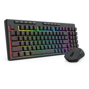 Gaming Keyboard and Mouse Set, 3-LED Backlit Mechanical Feel Business Office Keyboard, Colorful Breathing Backlit Mouse for Working or Primer Gaming, Office Device (RK108)