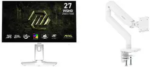 MSI 27" QHD 2K 1440P 320Hz IPS with FreeSync (Adaptive Sync) HDR400 Ai Vision with Height Adjustable, Pivot, Swivel & Tilt stand white color Gaming Computer Monitor MAG 274QRFW X32 MSI MAG MT201W - Premium Heavy Duty Single Monitor Stand Ar