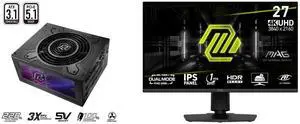 MSI 27" Dual Mode UHD 4K 144Hz Full HD 288Hz IPS with Adaptive-Sync 1ms HDR400 Ai Crosshair Gaming Computer Monitor with Height Adjustable, Swivel, Pivot & Tilt Stand MAG 275UPD E14
