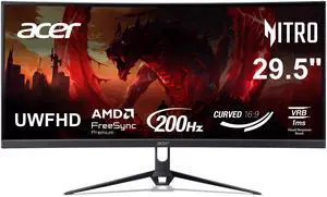 Acer Nitro 29.5" Ultrawide Full HD 1080P 200hz with AMD FreeSync Premium Technology 1ms sRGB 100% 1800R Curved Gaming Computer Monitor ED300C X1bmiippx