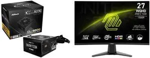 ASRock TC-1650T 1650 W Power Supply MSI 27" QHD 2K 1440P 180Hz with AMD FreeSync Sync 0.5ms HDR Ready support VRR Ai Vision Less Blue Light Anti-Flicker Curved Gaming Computer Monitor MAG 27CQ6F