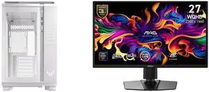 ASUS TUF Gaming GT502 White ATX Mid-Tower Computer Case with Front Panel RGB Button, USB 3.2 Type-C and 2x USB 3.0 Ports, 2- way Graphic Card Mounting Orientation Compatible, 360mm and 280mm Radiator MSI 27" WQHD 2K 1440P 240Hz with Adaptiv