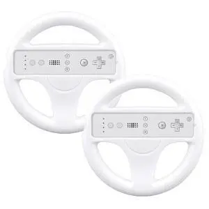 Retrofam 2 Pack Mario Kart Steering Wheel and Remote for Wii Game Console, White