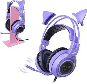 SOMIC G951S Purple Stereo Gaming Headset and Pink Headphone Stand for PS4, PS5, Xbox One, PC, Mobile Phone, 3.5MM Sound Detachable Cat Ear Headphones