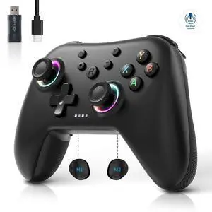 Aurora II 2.4G Wireless Bluetooth Controller for PC/Android/Switch/iOS/Switch 2/Steam Deck with Rotary Motors, RGB Hall Effect Joysticks - Upgraded PC Gaming Controller and Back Buttons Lock