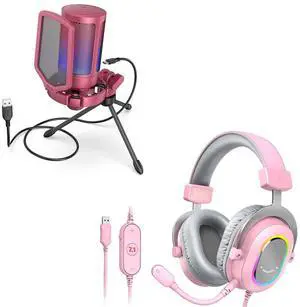 Streaming Gaming USB Microphone Kit and PC Gaming Headset with 7.1 Surround Sound,Condenser RGB Mic,Plug and Play,Computer RGB Over-Ear Headphones for PS4/PS5,for Streaming/Game Voice(A6TW+H6P)