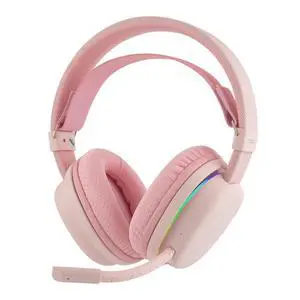 Aula G7 Wireless Gaming Headset for PS4/PS5/PC/Switch, Over-Ear Headphones with Detachable Noise Canceling Mic, RGB, Surround Sound, 60H Battery, 2.4GHz/BT/Wired (Pink)