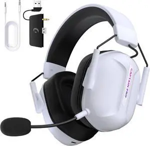 Wireless Gaming Headset, 7.1 Surround Sound, 2.4GHz USB Gaming Headphones with Bluetooth 5.4, 100H Battery, ENC Noise Canceling Mic, RGB Light, Wireless Headset for PC PS5 PS4 Mac Switch (Black-White)