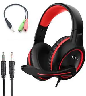 B3 Gaming Headset for Nintendo Switch, Xbox One, PS4, Mega Bass Surround and Noise Cancelling 3.5mm Jack Over Ear Headphones with Mic for Laptop PC Red- Brand: ETWAR