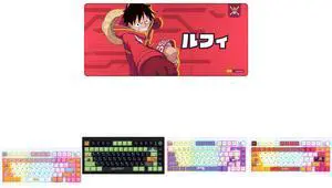 FANTECH One Piece Edition Luffy Gaming mousepad, MP905 Deskmat, Wear-resistant, waterproof, and slip-resistant rubber mat with a stylish design, 36*16*0.2 inch mouse pad, Red and FANTECH MK921 Gaming Mechanical Keyboard,One Piece Edition, Wireless/Wired/BT Connection ,RBG Controls, 80 Keys, USB-C Interface, White Shaft, White pink,Nami and FANTECH MK921 Gaming Mechanical Keyboard,One Piece Edition, Wireless/Wired/BT Connection ,RBG Controls, 80 Keys, USB-C Interface, White Shaft, Black Green,Zoro and FANTECH MK921 Gaming Mechanical Keyboard,One Piece Edition, Wireless/Wired/BT Connection ,RBG Controls, 80 Keys, USB-C Interface, White Shaft, White Purple,Gear5 and FANTECH MK921 Gaming Mechanical Keyboard,One Piece Edition, Wireless/Wired/BT Connection ,RBG Controls, 80 Keys, USB-C Interface, White Shaft, White red,Luffy - $519.95