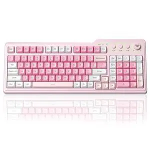 Wireless Keyboard with Media Knob, Tri-Mode BT5.0/2.4GHz/USB-C Cute Creamy Keyboard with Number Pad, RGB Backlit Gaming Keyboard, Quiet Typing Pink Computer Keyboards for Office Laptop/PC