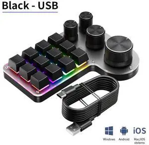 Mini Programming Custom Macro Keyboard for Wired RGB 12 Keys 4 Knobs Gaming Keypad Mechanical Hotswap Desktop Macropad Black -USB wired