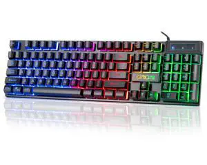 CHONCHOW Wired Gaming Keyboard, 104 Keys Full Size, with Anti-Ghosting and Multimedia Keys, LED Backlit Light Up Keyboard for PC Mac Laptop Desktop, Gaming or Office