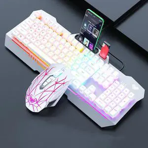 Wireless gaming keyboard and mouse combination, with rainbow LED backlight, rechargeable waterproof mechanical dustproof 7-color backlight, suitable for laptops, PC gamers