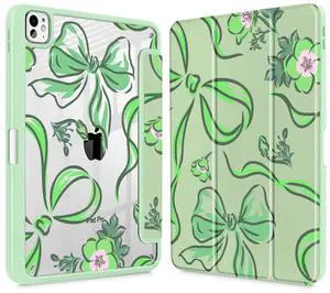 Mektron Case for M5/ M4 iPad Pro 11 inch 2025/2024 with Pencil Holder, Compatible Models: A3357/A3358/A3359/A2836/A2837/A3006, Shockproof Cover Clear Shell, Flowers-Bows-Green