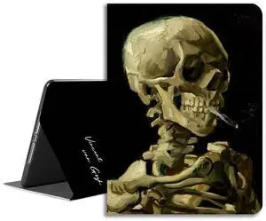 LiMon Arts Compatible with iPad Case Mini 5th/4th Gen 7.9" - Folio Protective Cover Shell - Durable Leather with Pencil Holder - Black Lovely Cool Stylish Halloween Van Gogh Head of a Skull
