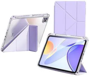 QoKcoahn Case for iPad Pro 11 inch Case (2024, 5th Generation),Crystal Clear iPad Case with Pencil Holder,Smart Stand Auto Wake/Sleep Protector Purple