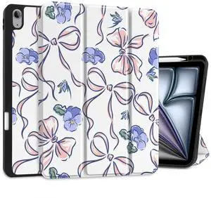 Xkladz Case for iPad Air 11 inch M3 (2025) / M2 (2024), iPad Air 5th / 4th Generation (2022/2020) 10.9 inch, Case with Pencil Holder, Clear Back Cover Cute Design for Women Girls, Wildflower A