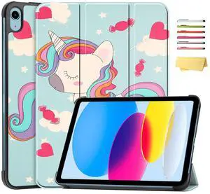 for iPad (A16) 11th Generation Case 11 inch 2025 & iPad 10th Generation Case 10.9 inch 2022, UUcovers Stand Tri-fold Smart Cover with Auto Wake/Sleep PU Leather Shockproof Shell, Rainbow Unicorn