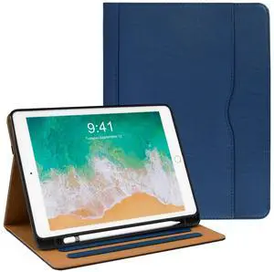 Zonefoker for iPad 6th 5th Generation Cases 2018/2017, iPad Air 2 Case 2014, iPad Air 2013, iPad Pro 9.7 inch Case 2016 with Pencil Holder, Leather Folio Cover for Kids, Women, Men, Navy Blue