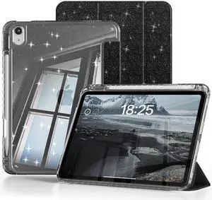 Zktuyu for iPad (A16) 11th 10th Generation Case 11/10.9 Inch 2025/2022, Glittering Sparkly Clear Back with Pencil Holder, Slim Trifold Stand Protective Cover for iPad A16 Case, Auto Sleep/Wake (Black)