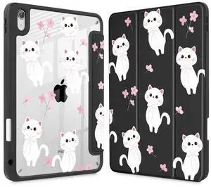 Tuiklol Case for iPad 11 inch (A16 Chip) 2025 Gen 11th / iPad 10.9 inch 2022 10th Gen, Buit in Pencil Holder with Shockproof Cover Clear Transparent Back Shell Auto Wake/Sleep,Cat-Black