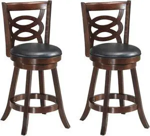 Costway Set of 2 Bar Stools 24'' Height Wooden Swivel Backed Dining Chair Home Kitchen