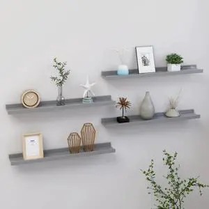 vidaXL Wall Shelves Floating Shelves Display Shelves for DVDs 4 Pcs Gray 23.6"