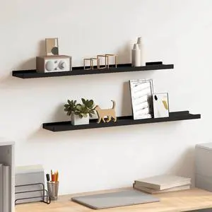 vidaXL Wall Shelves Floating Display Shelves Wall Mounted 2 Pcs Black 23.6"