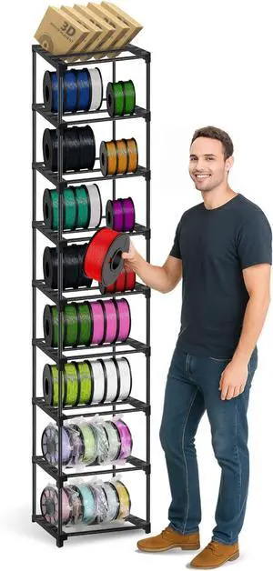 9-Tier Modular 3D Printer Filament Storage Rack, High-Strength Carbon Steel Spool Holder & Organizer, Holds 54 Spools(1kg), Space-Saving, Customizable, Tool-free Assembly