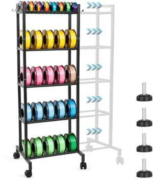 3D Printer Filament Rack, 18"-31" Length Adjustable 5-Tier 3D Printing Filament Storage Shelf Organizer with Wheel, 3D Printer Accessories, Holds Up to 55pcs 1kg Filament Spools (Shelf Only)
