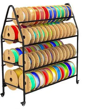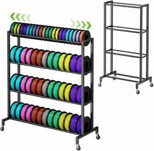 3D Printer Filament Storage Rack Stand, Rolling Filament Spool Holder Cart with Wheels, 4 Tier Expandable Heavy Duty Metal Shelf for 3D Printing Studio Workshop,1pcs Stand Only