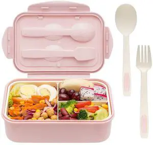 Bento Boxes for Adults - 1100 ML Bento Lunch Box For Kids Childrens With Spoon & Fork - Durable for On-the-Go Meal, BPA-Free and Food-Safe Materials, Pink
