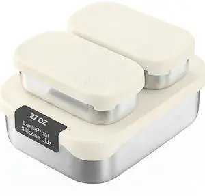 Stainless Steel Lunch Box Containers, 27 OZ, Stainless Steel Bento Box, Metal Lunch Box, Sandwich & Snack Containers, Leak Proof SIlicone Lids, Korean Style,Small Vanilla