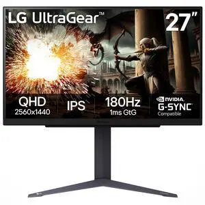 LG 27GS75Q-B 27-inch Ultragear QHD (2560x1440) Gaming Monitor, 180Hz (O/C 200Hz), 1ms, IPS, NVIDIA G-SYNC Compatible, AMD FreeSync, HDR10, Tilt/Height/Pivot Stand, HDMI, DisplayPort, Black