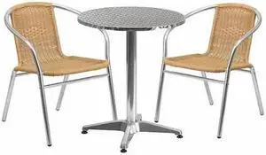 23.5'' Square Aluminum Indoor-Outdoor Table Set with 2 Dark Brown Rattan Chairs