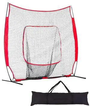 VEVOR 7x7 ft Baseball Softball Practice Net, Portable Baseball Training Net for Hitting Batting Catching Pitching, Backstop Baseball Equipment Training Aids with Strike Zone