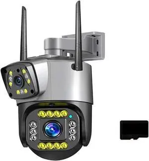 8MP 4K POE PTZ WiFi IP Camera Dual Lens with Dual Screen Ai Human Detect Auto Tracking Wireless Outdoor Surveillance Camera(U/K,8MP Add 64G Card)