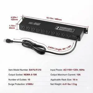 Front Panel LEDs: 16 power availability LEDs confirm power off/on status for each built-in outlet. Two additional LEDs with toggle button identify which bank the visual current meter is reporting (bank 1, bank 2 or bank 1&2 combined)