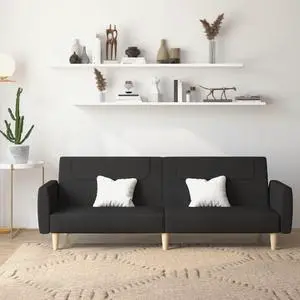 vidaXL 2-Seater Sofa Bed Accent Upholstered Loveseat Sleeper Couch Black Fabric