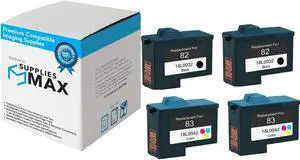 SuppliesMAX Remanufactured Replacement for Lexmark X5100/X5130/X5150/X5190/X6100/X6150/X6170/X6180/X6190/X65/Z55/Z65N Inkjet Combo Pack (2-Black/2-Color) (NO. 82/NO. 83) (18L0860_2PK)