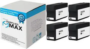 SuppliesMAX Remanufactured Replacement for HP OfficeJet Pro 9010/9014e/9015e/9019/9020e/9022e/9023/9025e/9026/9028e Black High Yield Inkjet (4/PK-2000 Page Yield) (NO. 962XL) (3JB35BN_2PK)