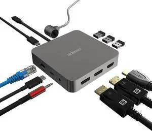 Belkin Connect 11-in-1 Universal USB-C Pro Dock w/ 3-Monitor Support, Silicon Motion Technology - Works with Mac, Windows, and Chromebook - 100W PD w/ 10Gbps Transfer Speeds & 2.5Gbps Ethernet - Grey