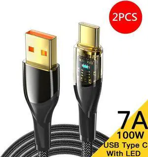 PD 100W USB A to USB C Cable,Jansicotek 7A Fast Charging USB C Cable Transparent Nylon Braided Charger Cord Type C Cable for Samsung S21 S20 iPad Pro Google Pixel LG (3.3FT, 2-PACK)