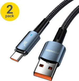 [3.3ft, 2-pack] Jansicotek USB A to USB C Cable 7A PD 100W Transparent Cable QC4.0 Super Fast Charging Type-C Phone Nylon Braided Charger Cord 480Mbps Data for iPad MacBook Samsung Galaxy Pixel PS5