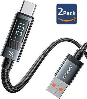 PD 100W USB A to USB C Cable,Jansicotek 7A 11V Fast Charging USB C Cable with LED Display Nylon Braided Charger Cord Type C Cable for Samsung S21 S20 iPad Pro Google Pixel LG (3.3FT, 2-PACK)