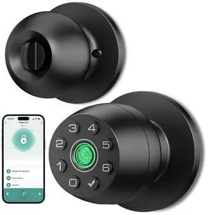 Fingerprint Door Lock-Smart Door Knob with Passcode Keypad-Finger Print Door Knob, App ControlAuto LockPrivacy Mode - Ideal for Apartment, Bedroom, Office, Matte Black